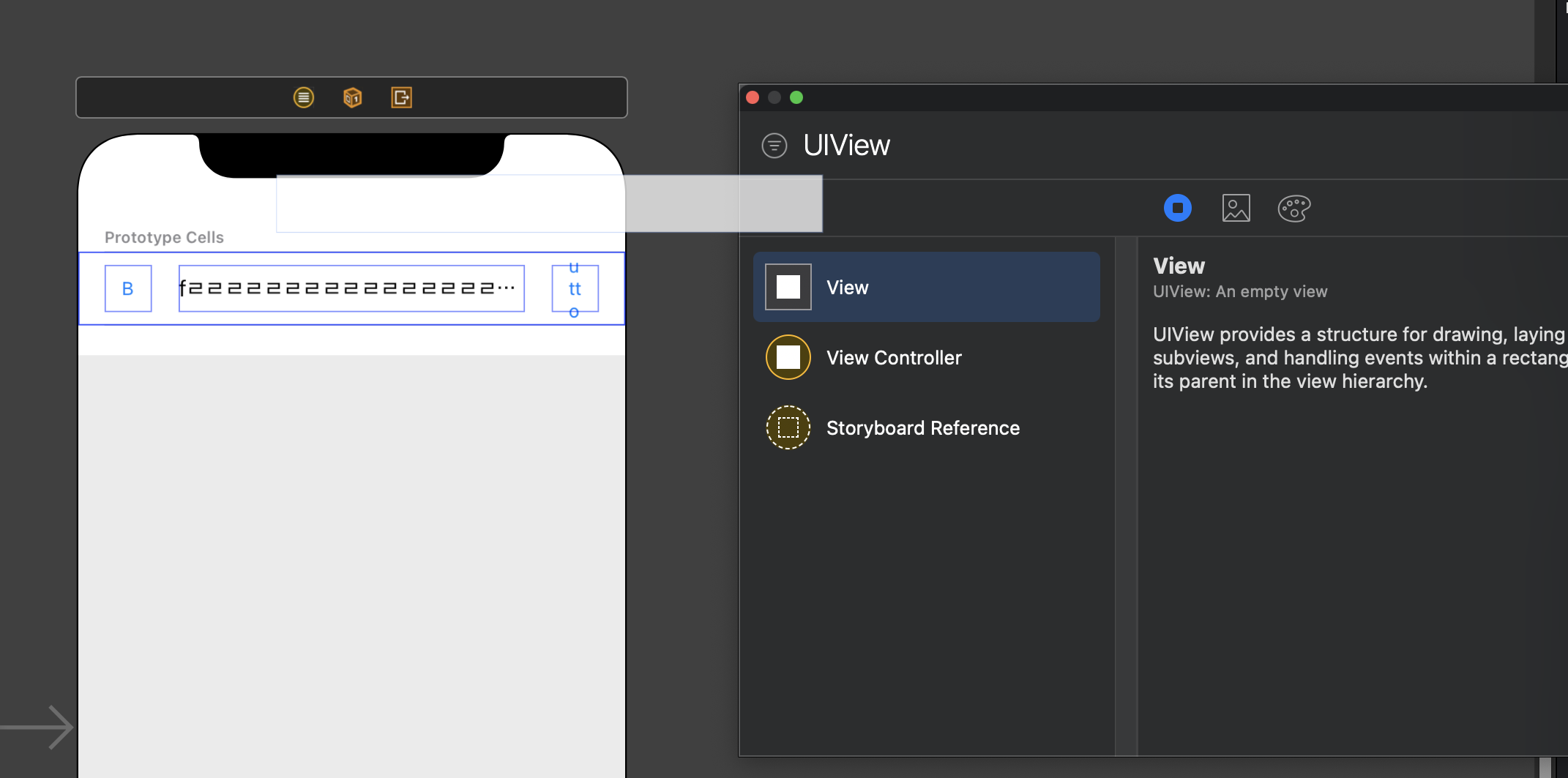 그 다음 View를 먼저 넣어주고 뷰 안에 레이블, 텍스트필드, 버튼을 넣어주겠습니다. 반드시 View를 먼저 넣어주셔야 합니다.