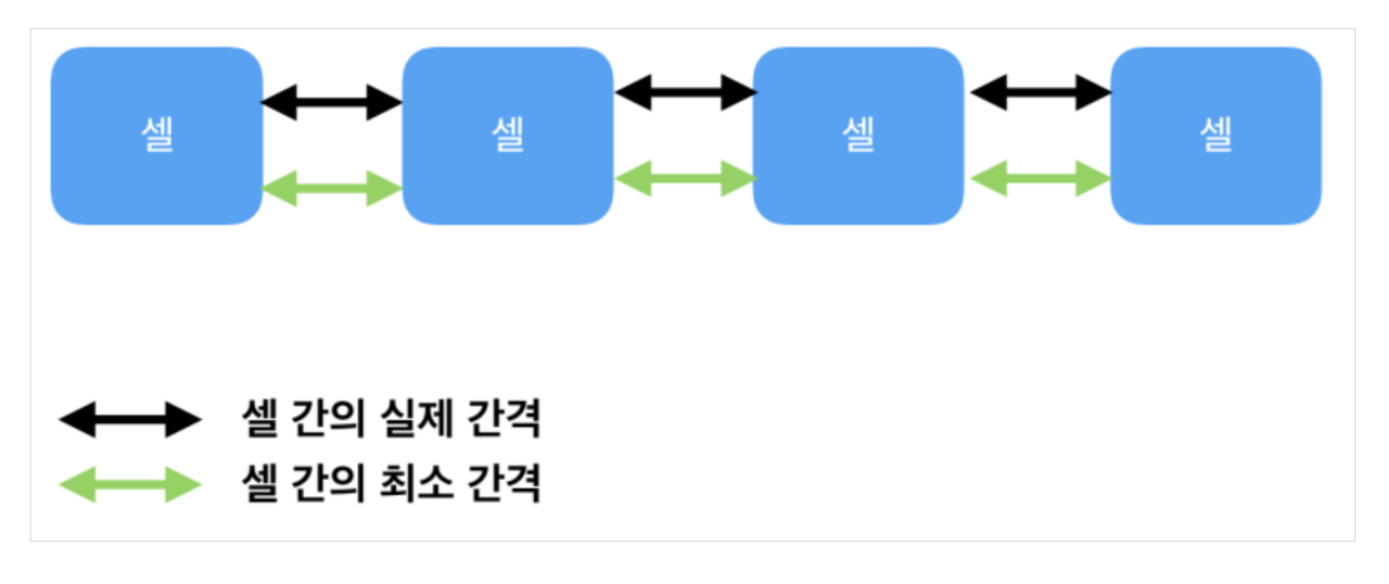 하지만 가각의 셀 크기가 다른 경우 셀간의 최소간격은 셀간의 실제간격과 다를 수 있습니다.