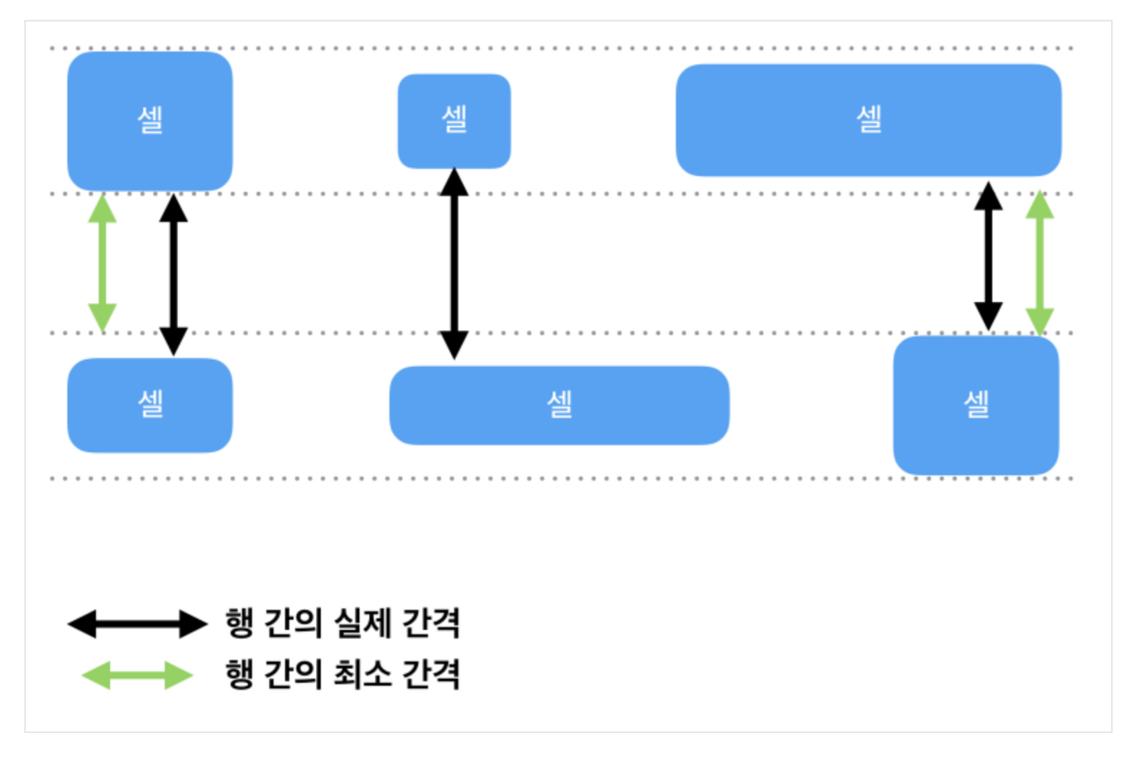 여기서 주의할 점이 하나 있습니다. 최소간격을 설정하는데 있어 모든 셀의 크기가 동일하다면 다음 그림과 같이 문제가 없습니다.