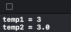 temp1과 temp2에 같은 3을 대입했으나 결과가 다르게 나온 것을 볼 수 있다. 이는 3의 경우 컴파일러가 타입 추론을 Int형으로 하기 때문인 것을 알 수 있다.